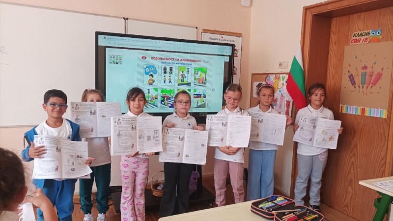 В часа децата имаха възможност да се запознаят с елементите на пътя, важни правила и съвети за правилно поведение като пешеходци. В беседа с учениците се припомниха опасните и безопасни места по пътя и се изясни защо непознаването им е причина за тревога.