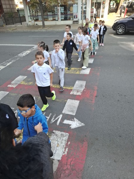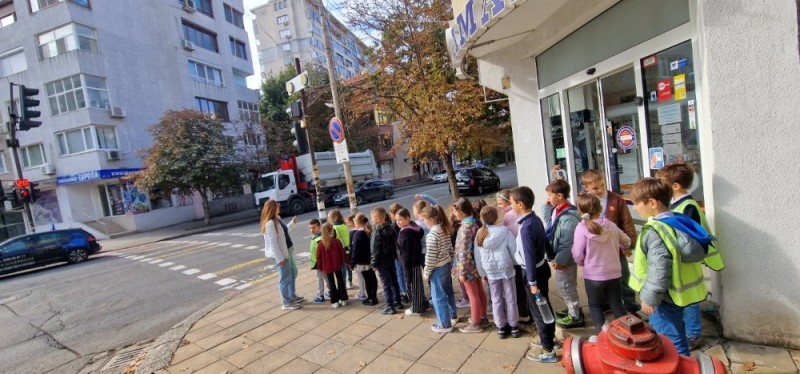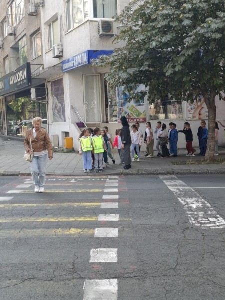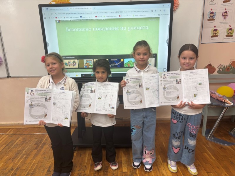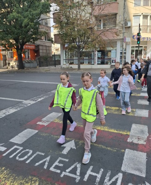 Под ръководството на своите класни ръководители, първокласниците направиха и практическо упражнение по безопасно пресичане, като внимателно следваха правилата за движение. Децата се запознаха с основните пътни знаци, научиха какво означават цветовете на светофара и как да бъдат отговорни участници в движението.