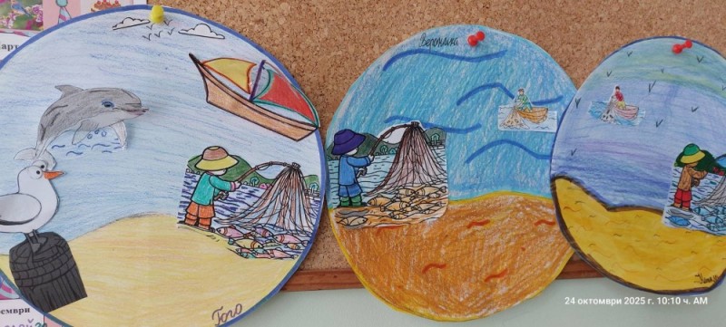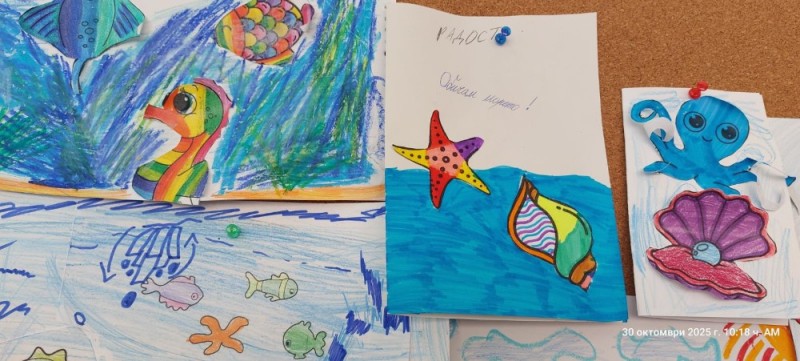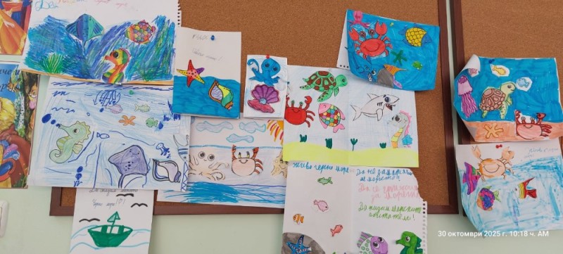 Децата научиха защо е важно да пазим морето чисто и как малките, но постоянни действия на всеки от нас могат да променят света. Те изработиха картички с послания за опазване на морето, които подариха на своите приятели и родители. На таблата нарисуваха морските обитатели на Черно море и допълниха творбите си с призив: