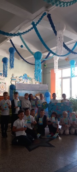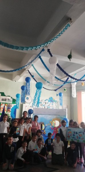 Фоайето на училището се превърна във впечатляващ подводен свят – с вълни, риби, медузи и пъстри морски картини. С помощта на учителите от ЦОУД, учениците украсиха целия първи етаж като истинско морско дъно и създадоха кът за снимки, който внесе много настроение и усмивки. Снимките пред морския декор отново ни показаха, че любовта към природата започва от училище – с познание, грижа и добро отношение.