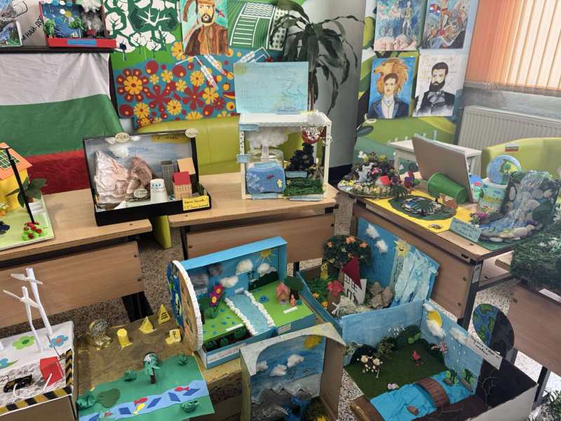 В чест на този значим ден нашето училище се превърна в истинско пространство на творчество, вдъхновение и екологично послание. Коридорите и класните стаи бяха изпълнени с разнообразни макети, табла и художествени проекти, изработени от учениците. Всяка творба носеше силно послание, свързано с опазването на природата, рециклирането, намаляването на отпадъците и грижата за околната среда. Използвани бяха различни материали – често рециклирани – което още веднъж подчертава значението на повторната употреба и устойчивото мислене.