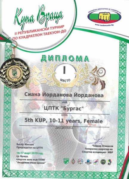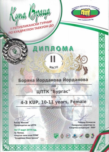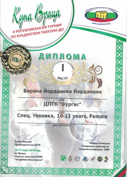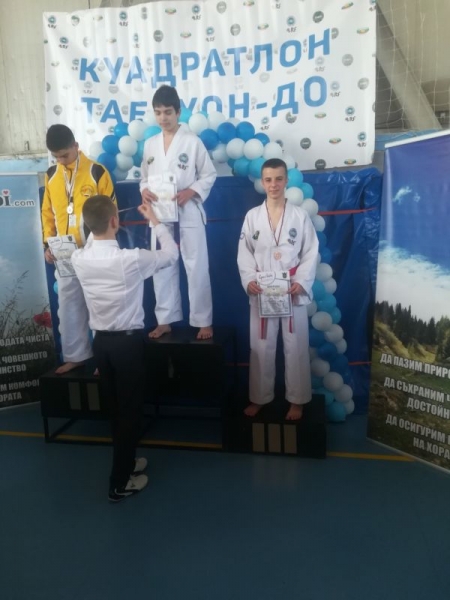 16-17.02.2018г. XI Открито първенство по Куадратлон Таекуон -До за “КУПА ЛЕВСКИ” в гр. Елин Пелин. Учениците от нашето училище спечелиха следните отличия: Боряна Йорданова – Второ място – специална техника и Трето място – Туль Борислав Попов – Първо място – специална техника, Първо място – Туль, Трето място – силов тест и най-голямото отличие, което получават само 10 деца в състезанието Статуетка за Куадратлонист при момчета 8-9 години – “Купа Левски”. Христо Николов – Трето място – спаринг, Трето място – специална техника. Положените усилия и постоянството винаги дават резултати! ПОЗДРАВЛЕНИЯ!