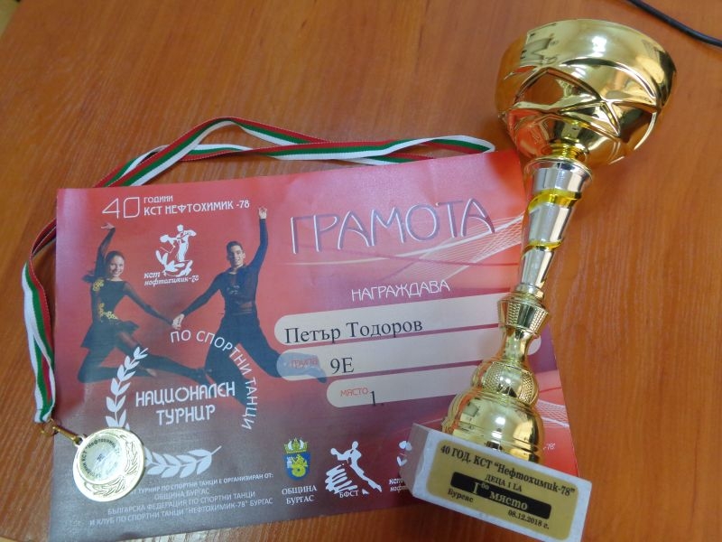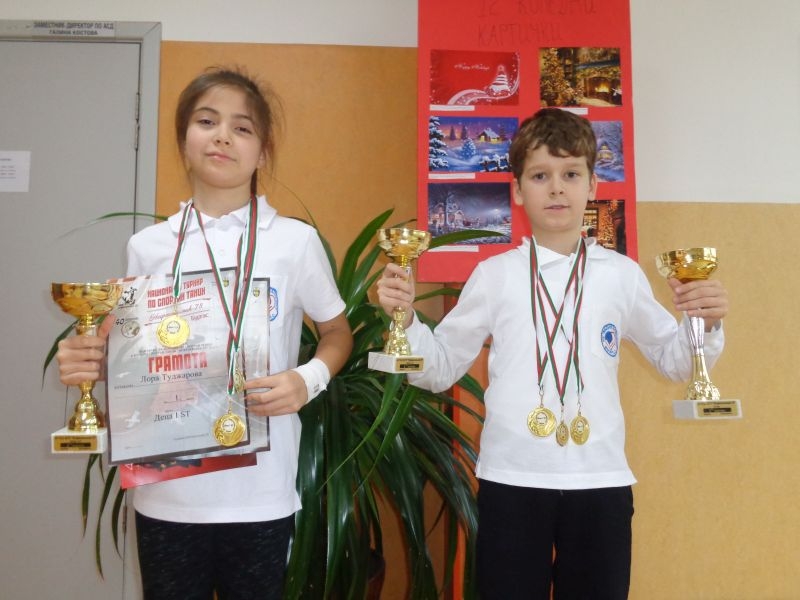 16.12.2018г. Коледен турнир по бадминтон в Спортна зала „Лукойл Нефтохимик“ Златни, сребърни и бронзови медали за нашите участници! Класиране: V – VI клас момчета – Максим Мариянов – VI а клас – ВТОРО място – СРЕБЪРЕН медал момичета – Михаела Колева – VI а клас – ПЪРВО място – ЗЛАТЕН медал Мона Хурани – VI б клас –ТРЕТО място – БРОНЗОВ медал VII – VIII клас момчета – Явор Николов – VII г клас – ПЪРВО място – ЗЛАТЕН медал Георги Гюзелев – VII г клас – ТРЕТО място – БРОНЗОВ медал
