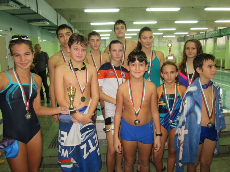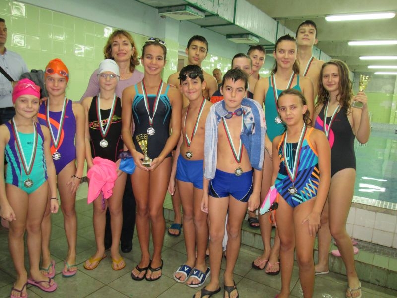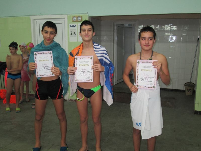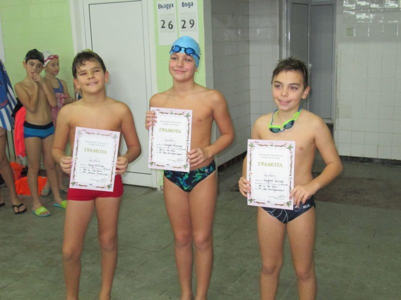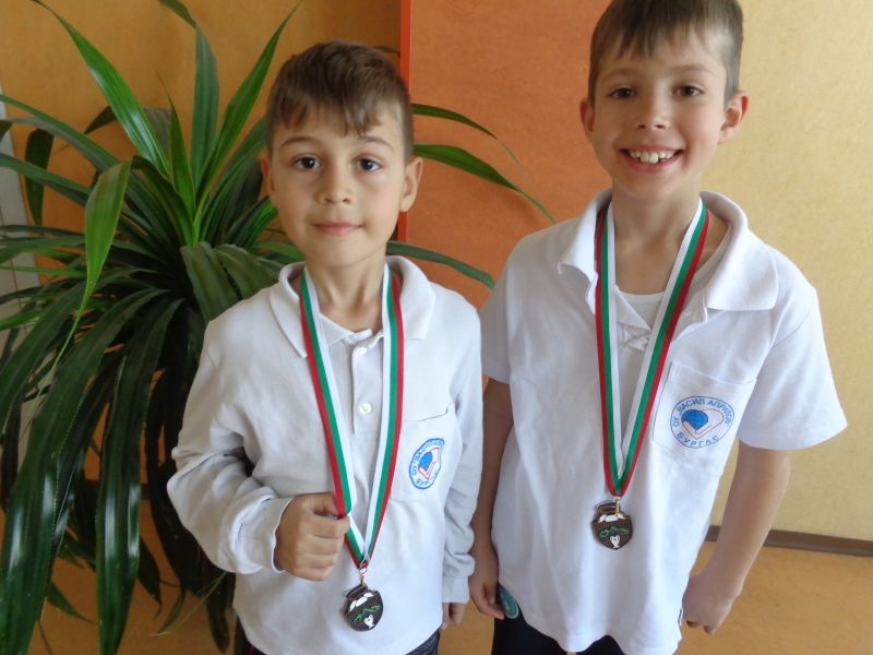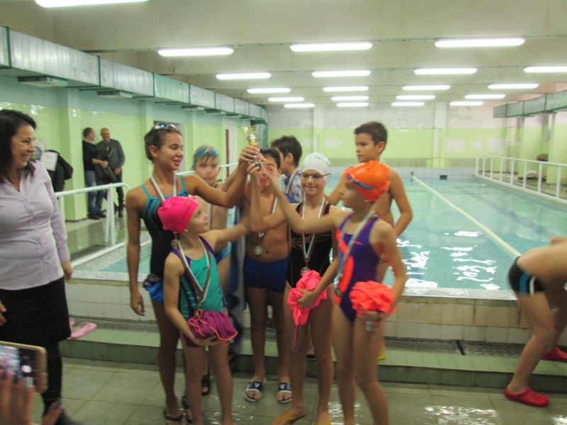 | 28.11.2018г. Ученически турнир по ПЛУВАНЕ Учениците от ОУ “Васил Априлов” – Бургас участваха и спечелиха престижни награди! Класиране: Десислава Белова – IV б клас – ПЪРВО място – ЗЛАТЕН медал момичета – 50 м гръб Десислава Белова – IV б клас – ПЪРВО място – ЗЛАТЕН медал момчета – 50 м свободен стил Боян Райнов – IV а клас – ТРЕТО място – БРОНЗОВ медал V – VII клас момичета – 50 м свободен стил Вивиан Пенчева– VII клас– ТРЕТО място – БРОНЗОВ медал момичета – 50 м гръб Вивиан Пенчева– VII клас – ТРЕТО място – БРОНЗОВ медал момчета – 50 м свободен стил Виктор Киров – VII б клас – ПЪРВО място – ЗЛАТЕН медал Диян Матаров – VII клас – ТРЕТО място – БРОНЗОВ медал момчета – 50 м гръб Диян Матаров – VI г клас – ПЪРВО място – ЗЛАТЕН медал Виктор Киров – VII б клас – ТРЕТО място – БРОНЗОВ медал Щафети 8 х 25 м свободен стил I – IV клас /момчета и момичета/ – ВТОРО място – 8 СРЕБЪРНИ медала V – VII клас /момчета и момичета/ – ВТОРО място – 8 СРЕБЪРНИ медала