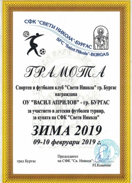 | Детски футболен турнир за купата на СФК “Свети Никола” – 9-10.02.2019г.