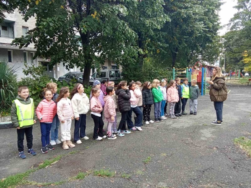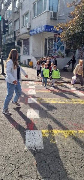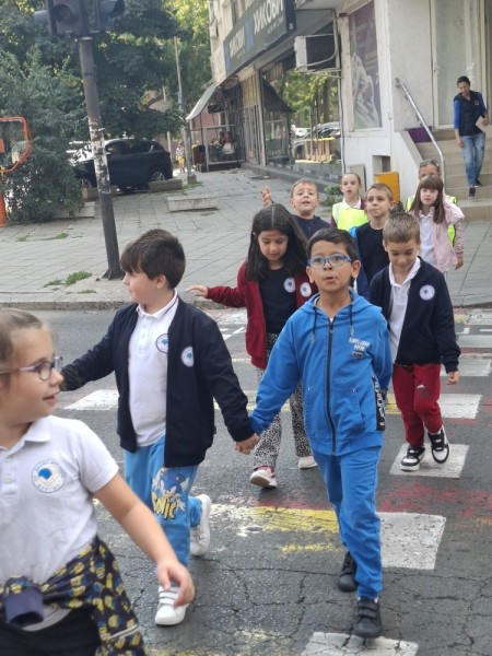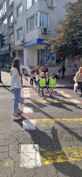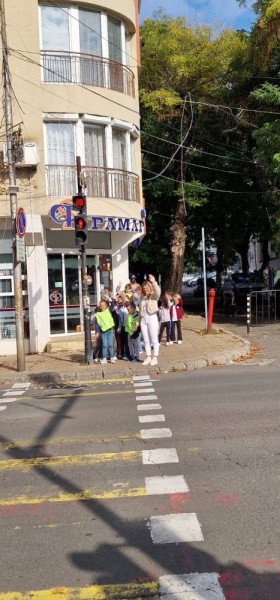 Под ръководството на своите класни ръководители, първокласниците направиха и практическо упражнение по безопасно пресичане, като внимателно следваха правилата за движение. Децата се запознаха с основните пътни знаци, научиха какво означават цветовете на светофара и как да бъдат отговорни участници в движението.