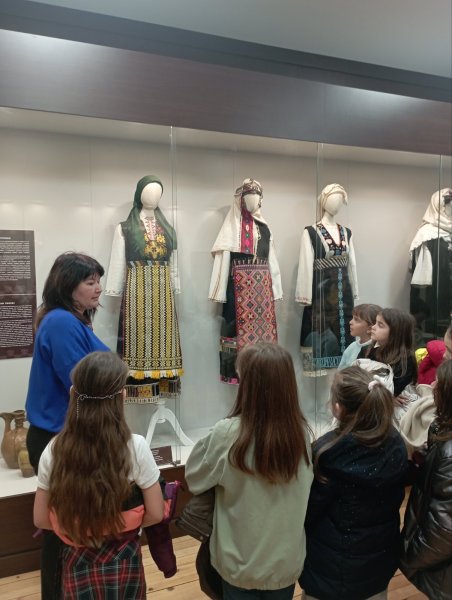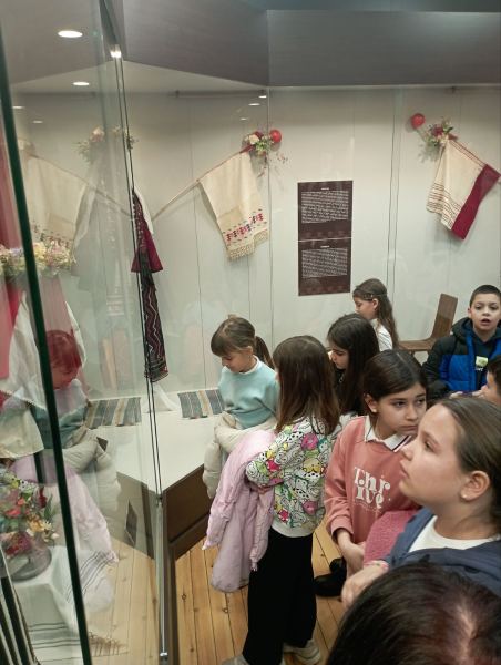 Децата разгледаха красиви народни носии и накити, запознаха се с традиционни занаяти и проследиха как в миналото хората са извличали и обработвали вълна, коприна и коноп. Учениците с любопитство откриха как се е създавала българската тъкан и колко труд, търпение и умение са били вложени във всяка дреха.