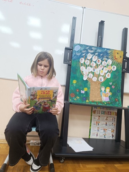 Специален гост ни беше прекрасната кака Татяна от IV “в” клас. С топъл глас и искрящи очи тя ни потопи в света на вълшебните приказки и ни показа колко красиви и пъстри могат да бъдат книгите. Заедно открихме, че всяка книга е истински приятел – тя ни дава знания, отваря вълшебни врати и ни отвежда в далечни, чудни страни, без дори да ставаме от стола!