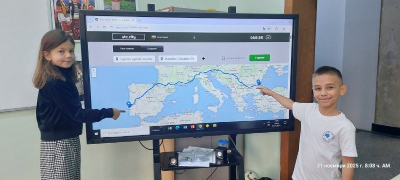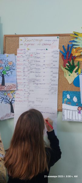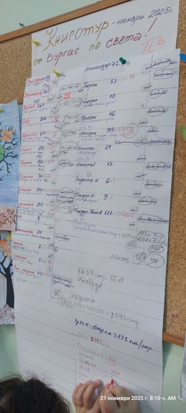 През Седмицата на четенето учениците от II „б“ клас организираха своя КНИГОТУР. Всеки ученик избра книга и прочиташе страници от нея пред родители или съученици. Прочетените страници се превръщаха в „километри“ върху специална карта, като целта беше пътешествието да започне от Бургас и да покаже докъде могат да стигнат чрез четене. С общо 3950 прочетени страници децата заедно достигнаха почти до Лисабон – град, отстоящ на 3953 км. Най-активните читатели получиха награди, а всички заедно доказаха, че чрез четене можем да изминаваме огромни разстояния.