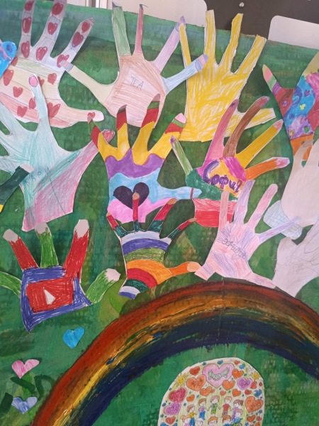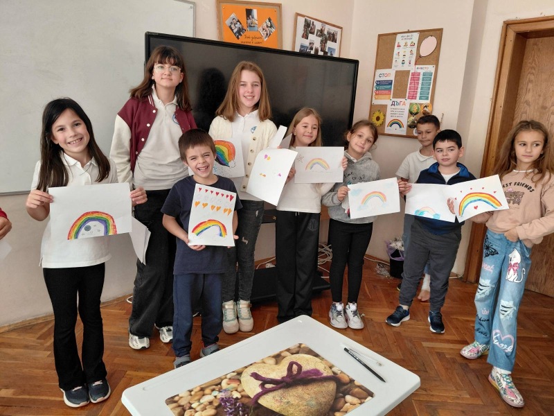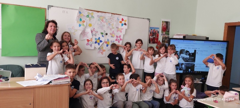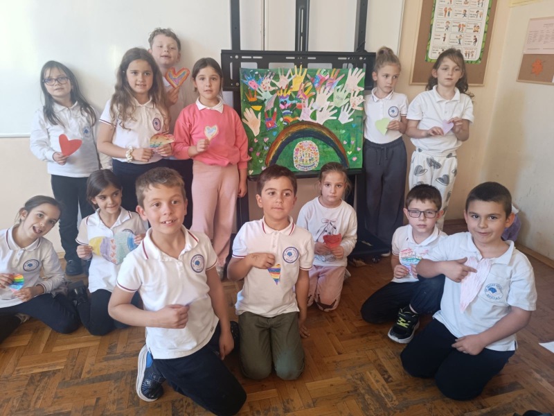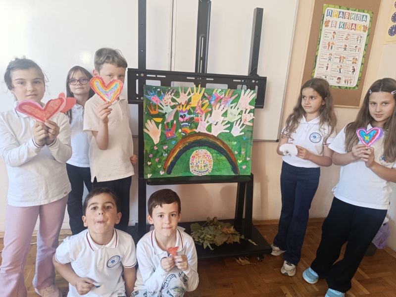 - Учениците от I “а” клас изработиха красиво тематично табло от сърчица и ръчички – символи на приятелството и добротата – и си обещаха да бъдат внимателни и съпричастни един към друг.