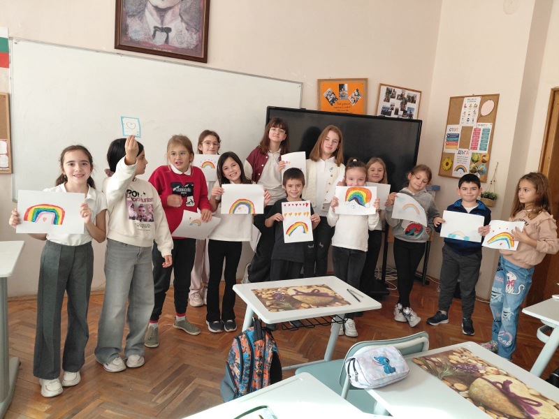 - Представители на Ученическия съвет от прогимназиалния етап посетиха първокласниците и им представиха „Приказка за цветовете и приятелството“, насърчавайки най-малките да се подкрепят и уважават.