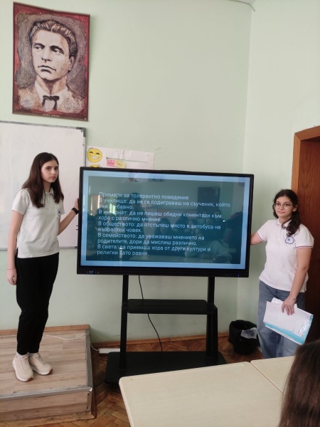 Ученическият съвет беше двигател на инициативата: подготви и представи тематични презентации и уроци по толерантност; организира ролеви и приобщаващи игри, чрез които децата развиваха умения за съпричастност и взаимно приемане; прочетоха приказки и проведоха занимания в началните класове.