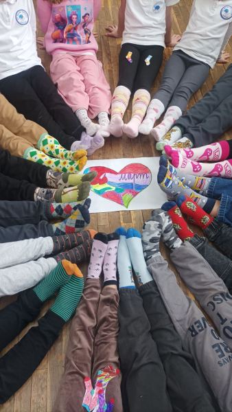 Денят завърши с много усмивки, общи снимки и усещането, че заедно сме направили нещо наистина смислено и важно. Защото приемането и добротата започват именно от малките жестове – един чифт шарени чорапки и едно голямо детско сърце.