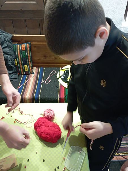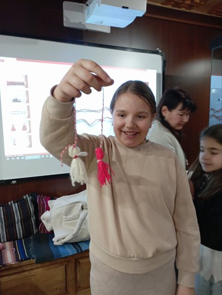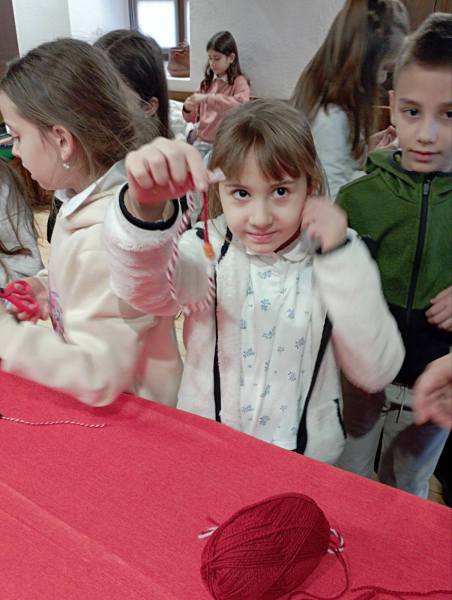 По време на посещението децата имаха възможност да се докоснат до истинска въ̀лна и да научат повече за това как в миналото тя е била обработвана и превръщана в красиви и полезни изделия. С интерес и любопитство те изслушаха разказа за историята на мартеницата – за символиката на белия и червения цвят, за образа на Баба Марта и за традиционните пожелания за здраве, късмет и благополучие.