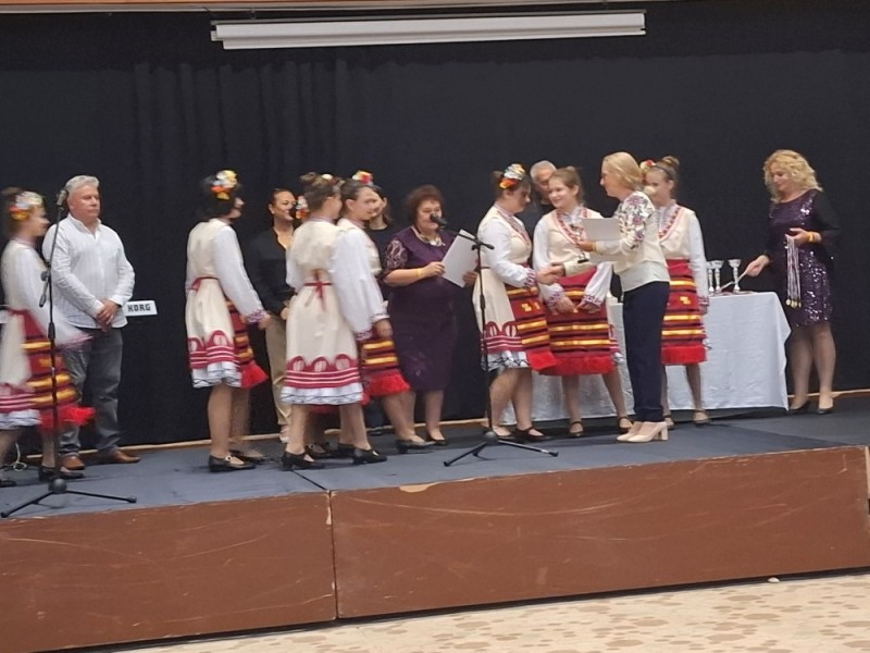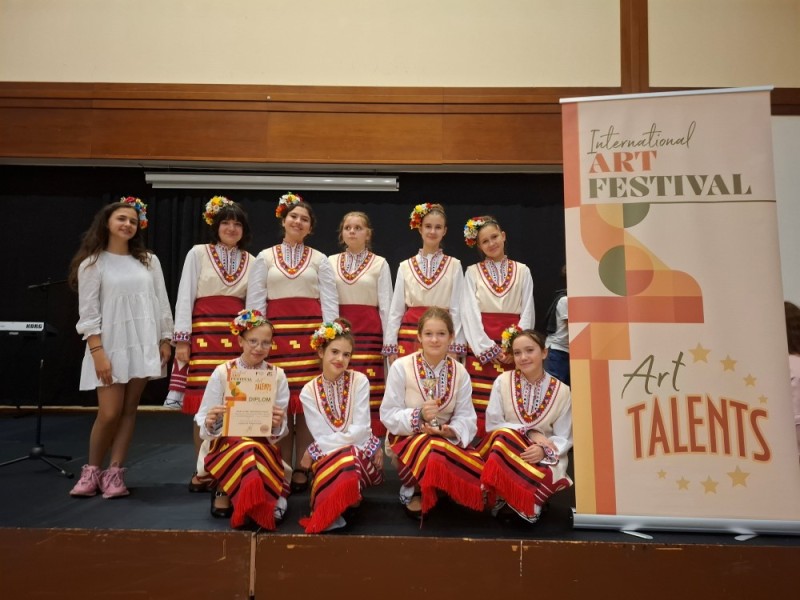 Особено признание получи и техния преподавател, г-жа Жасмина Дерменджиева, на която бе връчен сертификат за изключителен принос в областта на фолклора.